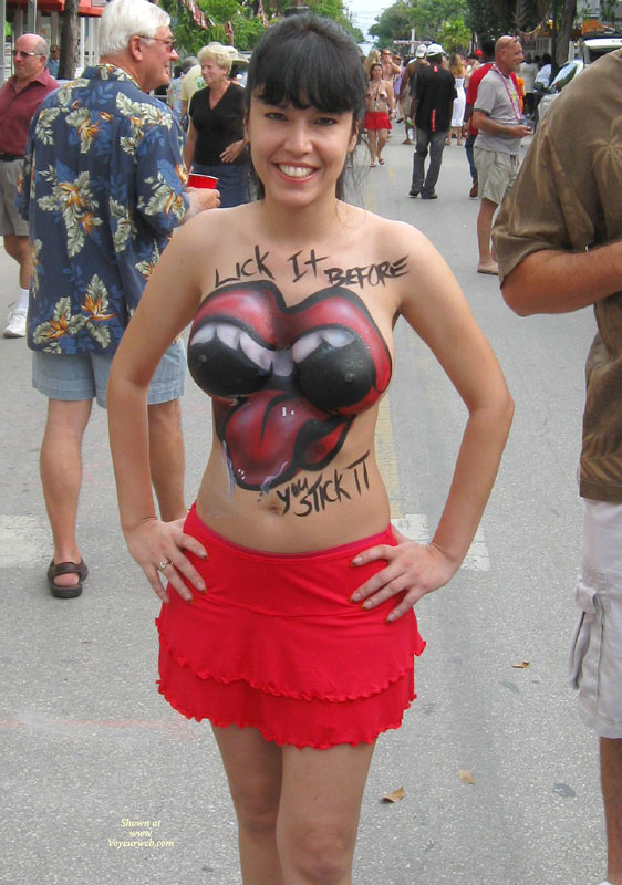 Part 2 of this contribution. Part 1 tells the story or rant or whatever. But before the new set of pics come up, I would like to say THANKS for all the great comments on Part 1! I sort of expected a contri with this title to get bashed mercilessly, but the comments were bountiful and fantastic! I want to take a moment to comment on a few of the comments.First of all, thanks to Caroline. Your comment surmises why we make our annual trek to FF each year, and left me drooling! It obliviously left others drooling too, because there were several comments directed at Carolines comment! I hope Caroline is there again next year, and hope I get a pic or 2 of you!Also thanks to Bad Kitty for the comments. I re-counted and this was our sixth FF also. I know Bad Kitty from this site, but amazingly I have never seen you in any of our 6 visits to FF. Goes to show how big FF is. I always enjoy looking at the other posts to see what I missed. I especially liked the CUTE NAKED GIRL AT FANTASY FEST 08 post of the girl who won the body painting contest this year. Regrettably I never saw her.RE - QUOTE I love the pics! Would like to see some of see-through clothing. Now that is exciting!!!!!!!!! Keep posting brother! UNQUOTE; Thanks and I do have a see-through clothing FF contri in the works.RE - QUOTE We also need to see pics of Aya at FF. UNQUOTE Dont worry, she always finds her way into one of my Fantasy Fest contris. I took 560 pics, and have several more contris in the works, including WIS and Red Clouds contris.RE - QUOTE There is nothing Voyeur about posed pics at Fantasy Fest UNQUOTE; OK, but the section is titled What I Saw. Yes, once upon a time it was titled the Voyeur section, but it has become too much of a legal risk for sites like VW to publish a lot of the true voyeur stuff you apparently want to see. I suggest that you contact your congressman and tell him/her that you want to go back to the Wild West days of the internet. By the way, are nude beach pics true voyeur? A few years ago I visited Haulover beach. I spent a long time trying to find a way to hide my camera in a rolled towel, but kept botching pictures. Finally I just took out the camera and walked around asking girls for permission to take their pictures. Many said yes, which is no big surprise. After all, they are hanging out naked on a public beach and therefore arent especially modest. Everyone assumes WIS nude beach pics were taken with a hidden camera, but I bet half are taken with the subjects full knowledge. The subject may even be the cameramans GF or wife. Can you tell the difference? Are they true Voyeur just because the subject isnt looking at the camera?RE - QUOTE Perfect analysis of the imbeciles on here that make nasty comments….I know that the lady with her in pic 5 is a regular contributor here…UNQUOTE; OMG!! That was a - combo!?!? Makes sense, they were together all of the time. How sexy is that, Mom and hanging naked on KW!! I envision yet another contri in the works!RE - QUOTE Brevity is the soul of wit. UNQUOTE; Point taken, I guess I am a bit weak in the brevity department!RE - QUOTE Good Job. I'll bet finding this batch of cunts was like looking for a needle in a haystack. UNQUOTE: Umm, thanks I guess. There were a few more needles in that haystack. See the pics below.